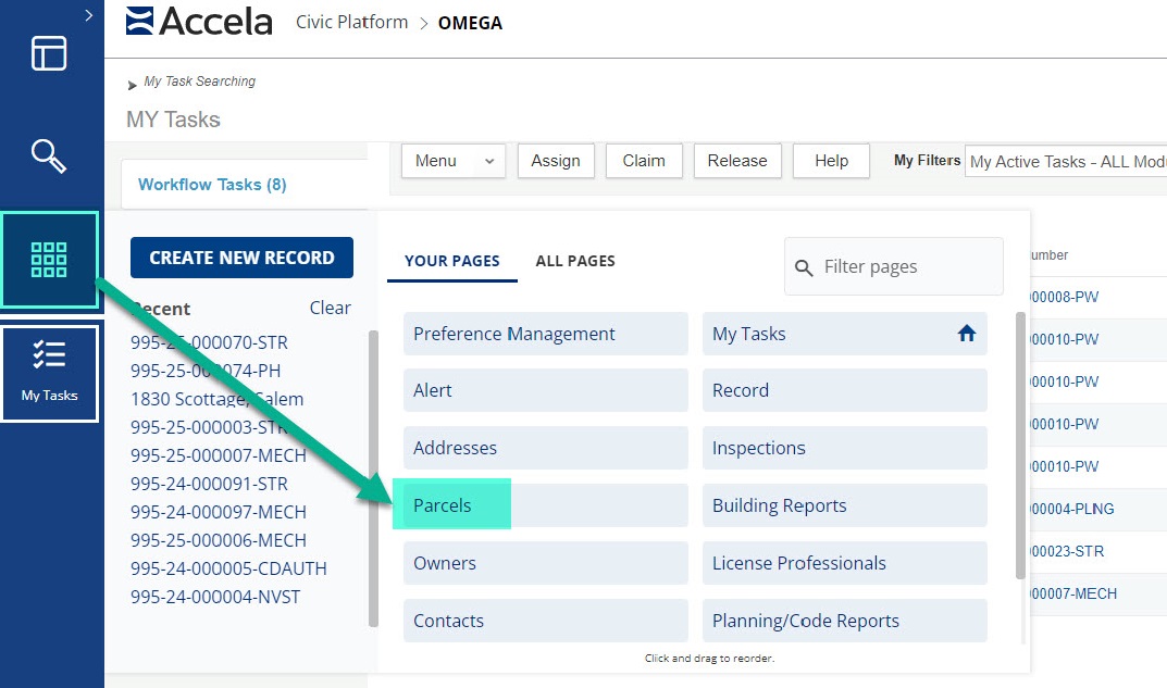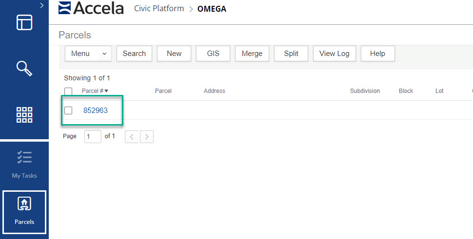 If the parcel does come up (or after you have created the parcel) when searched click on the parcel number to open it.