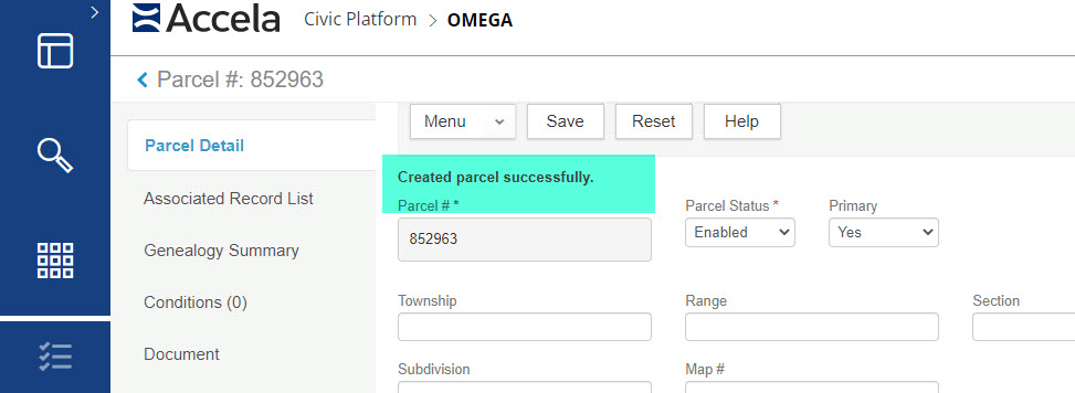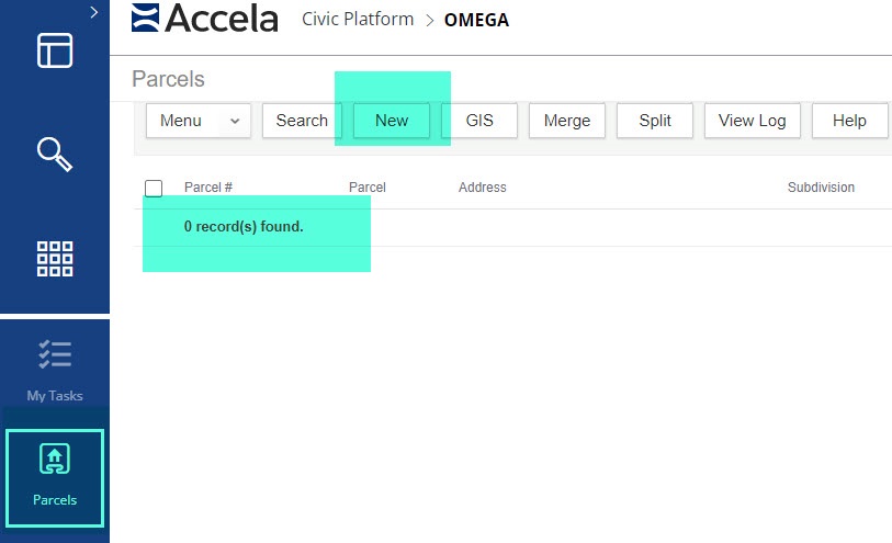 If the parcel does not exist in the system, click on ‘New’ to create a new one.