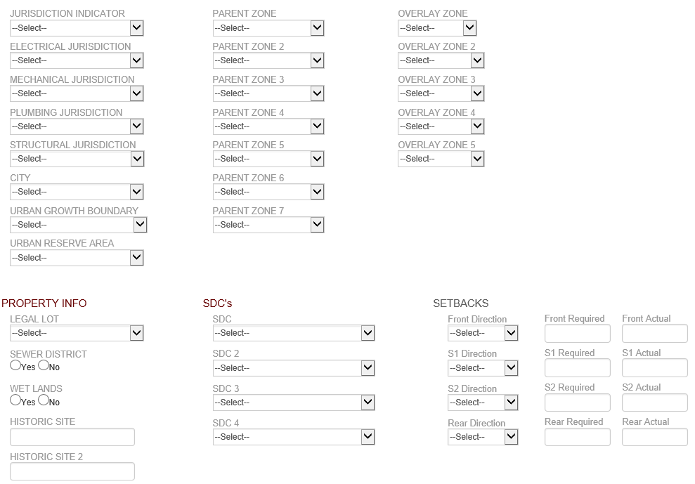 IF YOU ARE A COUNTY JURISDICTION > return to the Parcel Detail tab in the Parcel page tabbed window and scroll down to see if there are Service Jurisdiction dropdown fields displayed for Electrical Jurisdiction, Mechanical Jurisdiction, Plumbing Jurisdiction, Structural Jurisdiction, and Sanitation Jurisdiction service jurisdictions. If these are indicated – this means your jurisdiction shares some addresses with another service jurisdiction where you both participate in ePermitting and you both provide separate services to the same address – this address might exist in both jurisdictions where, for example, the City provides all building services except Electrical where the County provides the Electrical service.