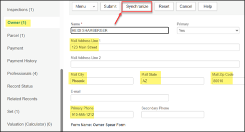Synchronize to then synchronize this individual transactional owner information to the reference owner information that you just updated in Step #1 just above.