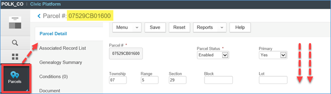 1. From the Launchpad > open the Reference Parcel page > search for the appropriate Parcel > navigate to Parcel Detail > scroll down to the Jurisdiction Parcel attribute fields.
