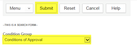 3. Select Conditions of Approval from the dropdown, click the Submit button.