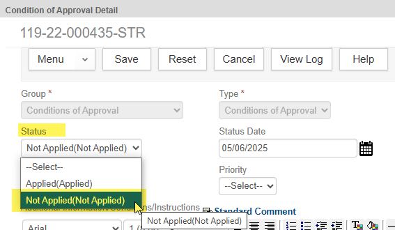 It is not possible to delete Conditions in Accela. However, Conditions can be set to Not Applied, which basically turns the condition off. To do this, click on the Condition name to open it, set the status to Not Applied, and save it.