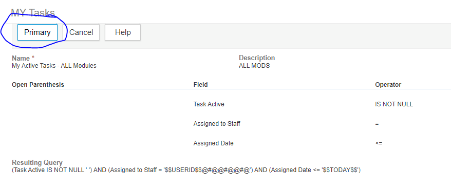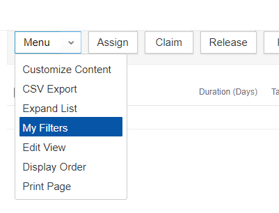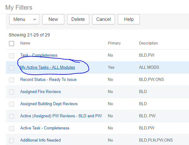 You can then hit Cancel twice to return to the main My Tasks page and your Primary filter should be set.