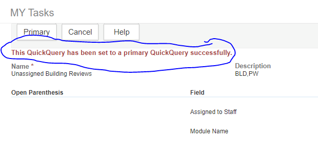 You should get a message that the filter(QuickQuery) has been set to Primary: