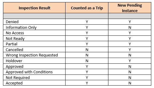 It's important for Inspectors and Building Officials to understand how the system is processing inspection data – from what results are indicating to whether or not it is being counted as a trip in data reports.