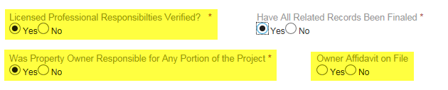 This information is then pulled into the Building Permit report into the Licensed Professional Information section with the following reference, “SEE PROPERTY OWNER INFORMATION".