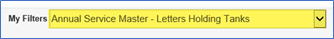 1. Select Record List Filter called Annual Service Master – Letters Holding Tanks.