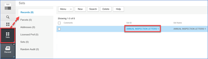 8. To generate physical letters for printing and mailing, from the Set Member page > select one record from the list  > hover over Reports > select Renewal Letter Holding Tank from Set.