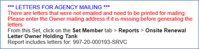 7. The output will let you know if you should generate letters for physical printing and mailing through USPS, when an Owner email address was not available.