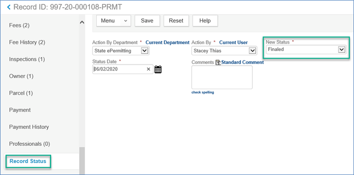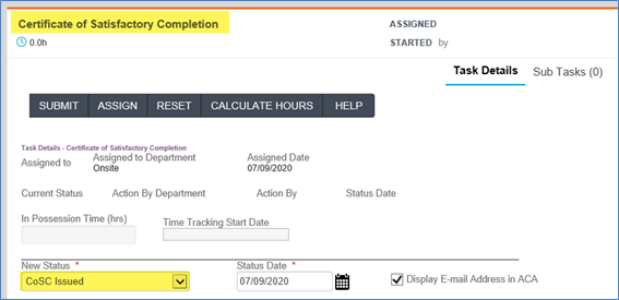 Note: Verify that the C of SC has been issued by clicking on the Record Status tab in the left navigation – the record should have a record status of Finaled.