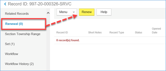 - View the new Renewal record by going to the Renewal page > then click on the Record ID.