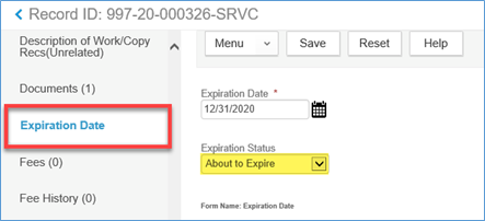 Note: If you do not see the Renew button, navigate to the Expiration Date page and verify the Expiration Status = About to Expire. If the Expiration Status is different, this Master record may have already been renewed for this year. The Expiration Date will help you determine this.
