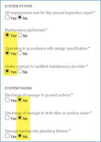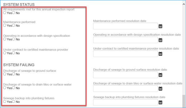 The annual inspection Y/N questions are not required. You can just skip past these fields.