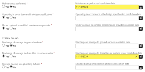 - Leave the negative Y/N answers as-is and enter a resolution date.