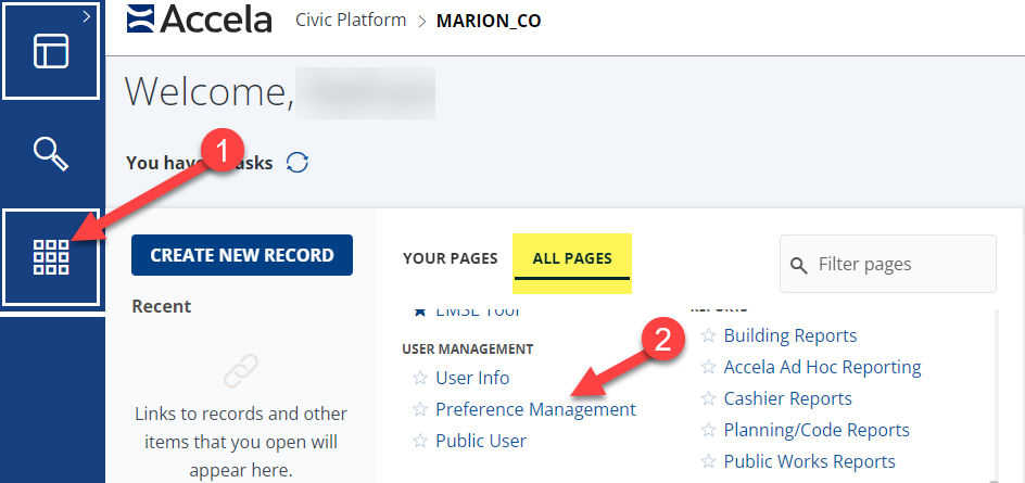 2. Click Preference Management (if not already favorited in Your Pages go to All Pages).