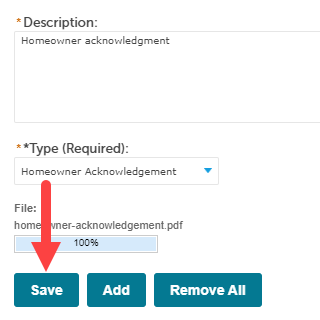 2. Select Add to attach the homeowner acknowledgement form.