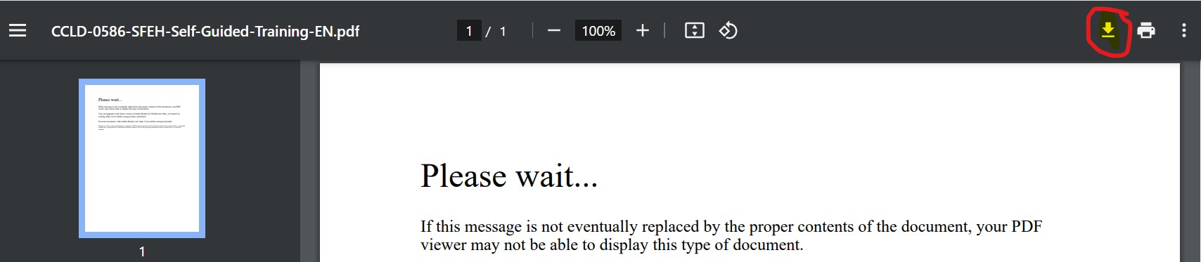 You will need to click on the download arrow to download the training to your desktop, then you will be able to open it and complete the training.