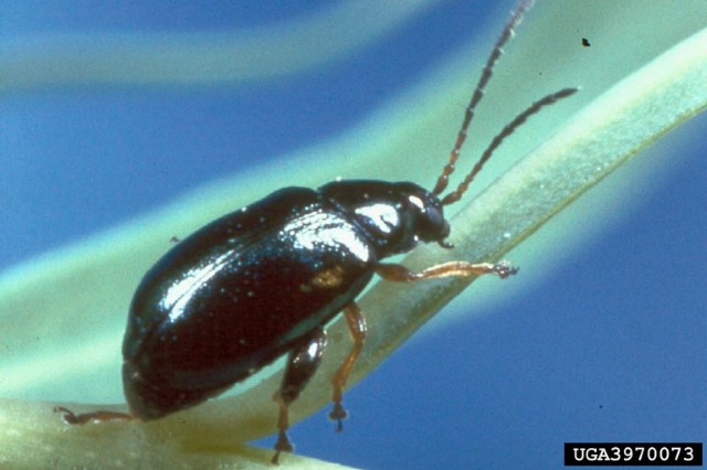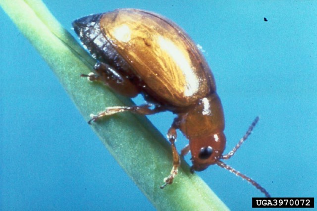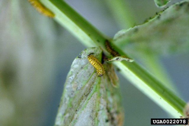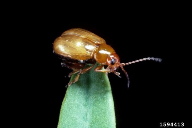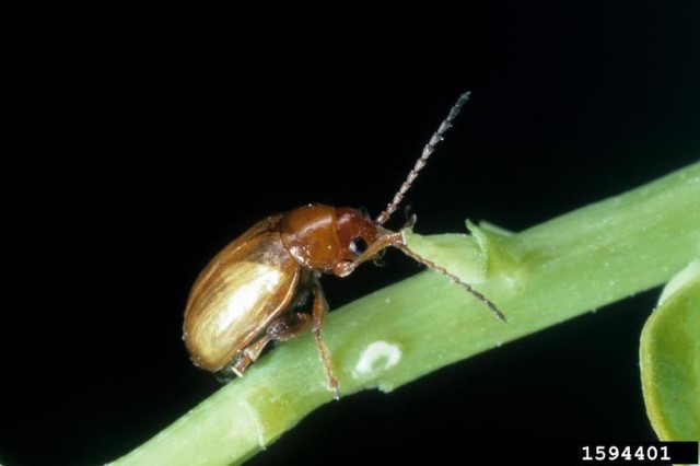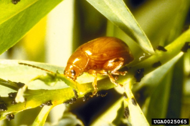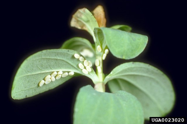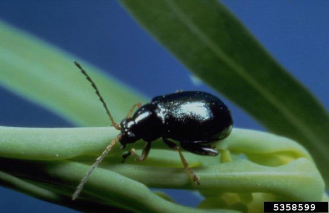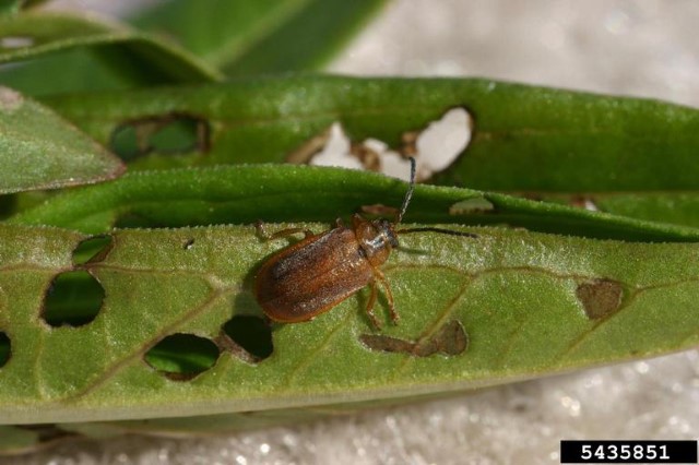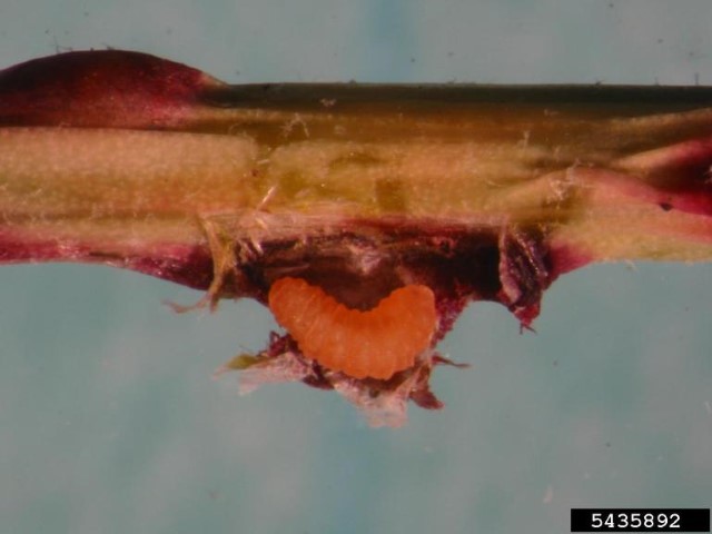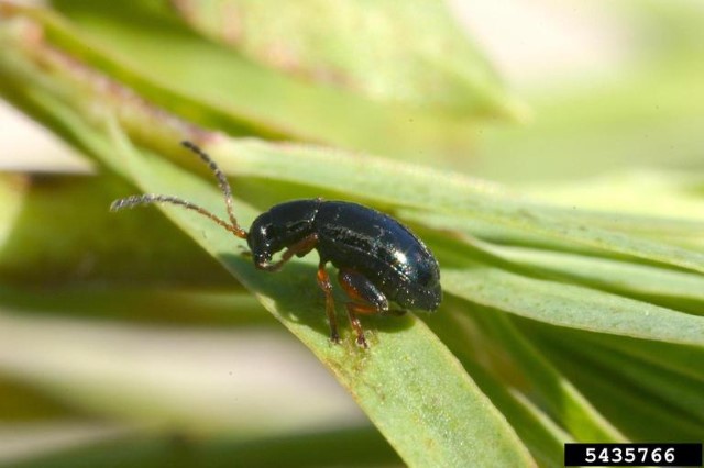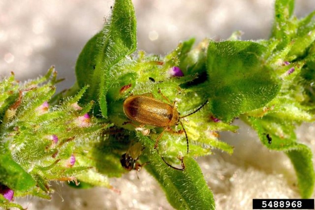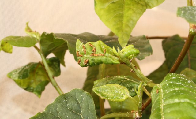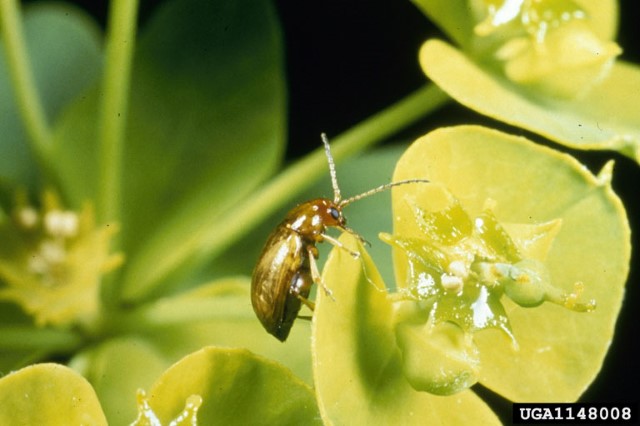 Petitioned for release in 2013 and permitted for release expected in 2020. One agent biotype from N. Japan prefers giant knotweed and another biotype from S. Japan prefers Japanese knotweed. 700 eggs per female laid on leaf surface. 33-day life cycle. One to three generations per year. Adults can fly and likely overwinter by seeking shelter in coniferous tree bark.