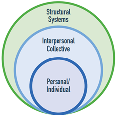 Creating a Culture of Care, the authors describe how “an ecological systems lens supports leaders in understanding how culture and various experiences, relationships, environments and systems influence an individual, a group and/or a system.” The three levels of this ecological system can be described as follows: