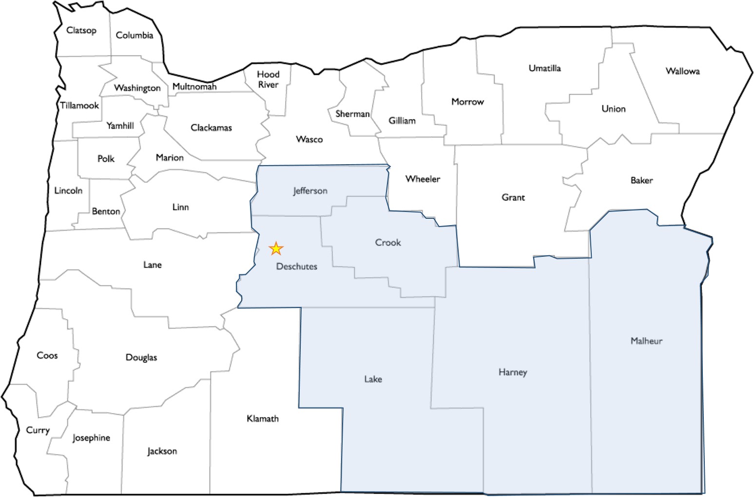 For Central Oregon: All public K-12 schools and charters, and districts and ESDs in Crook, Deschutes, Gilliam, Hood River, Jefferson, Klamath, Lake, Sherman, Wasco and Wheeler counties.