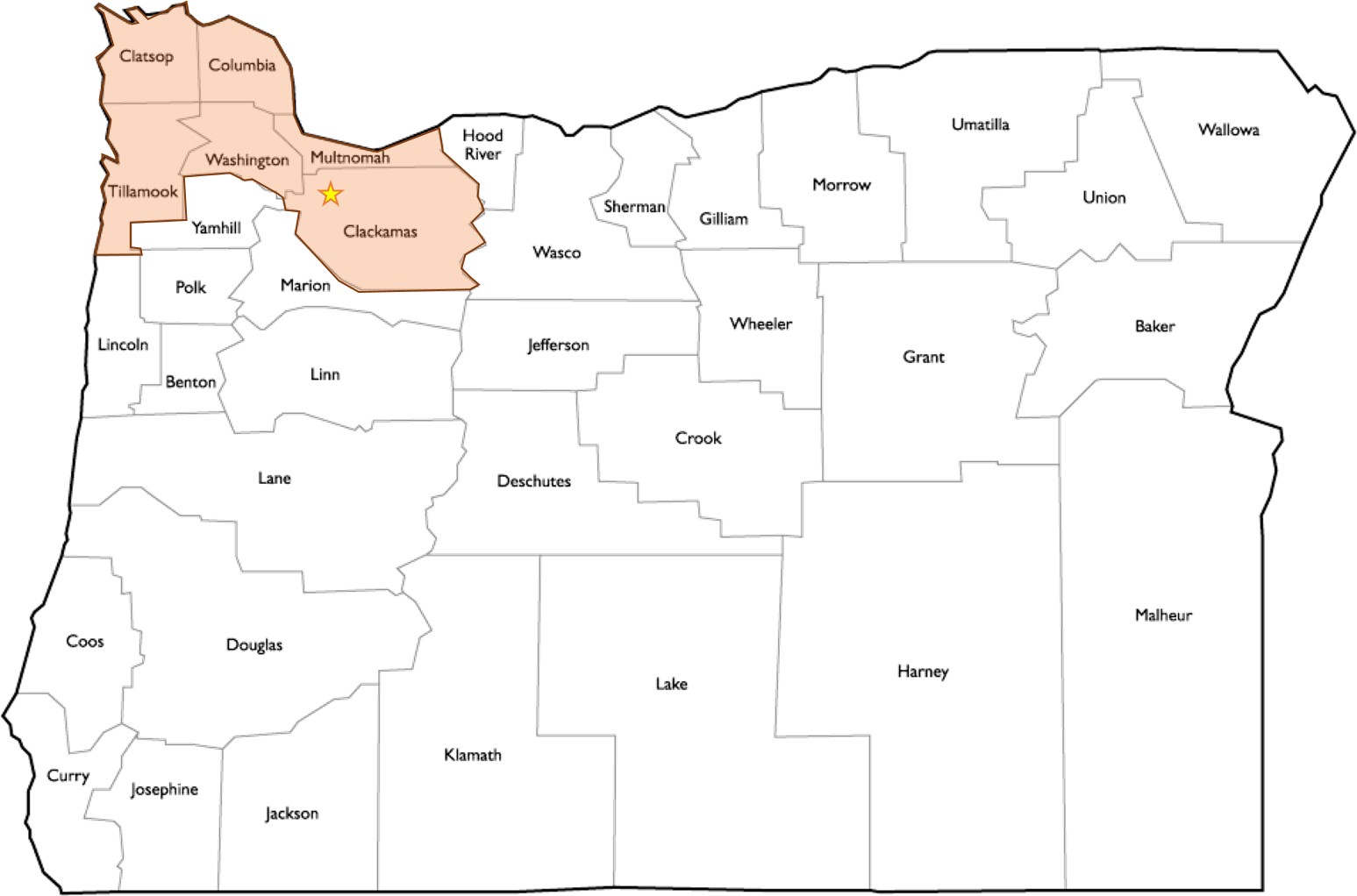 For Northwest Oregon: All public K-12 schools and charters, districts and Education Service Districts in Benton, Clackamas, Clatsop, Columbia, Lincoln, Linn, Marion, Multnomah, Polk Tillamook, Washington and Yamhill counties.