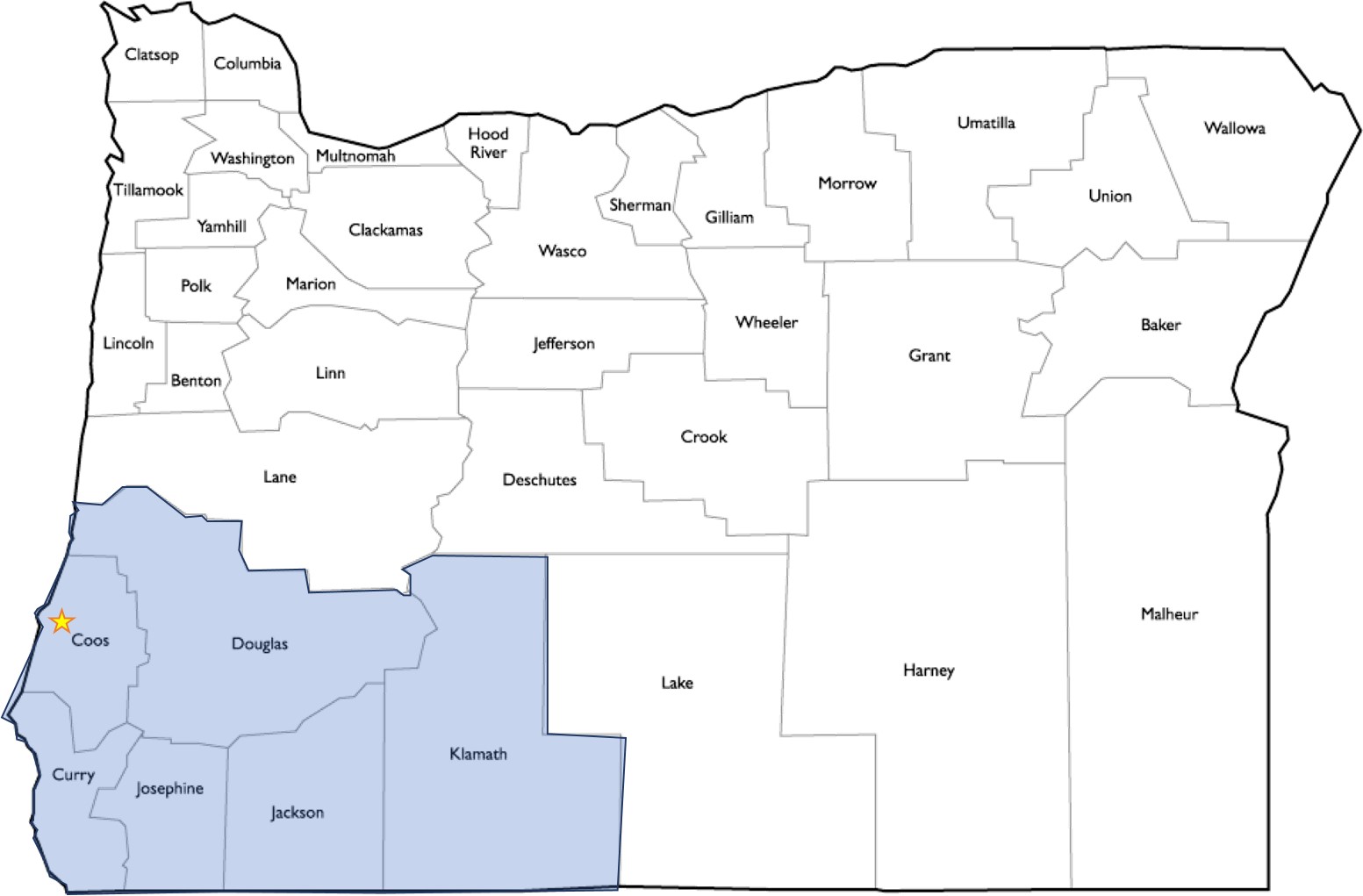 For Southwest Oregon: All public K-12 schools and charters, districts and ESDs in Coos, Curry, Douglas, Jackson, Josephine, and Lane counties.
