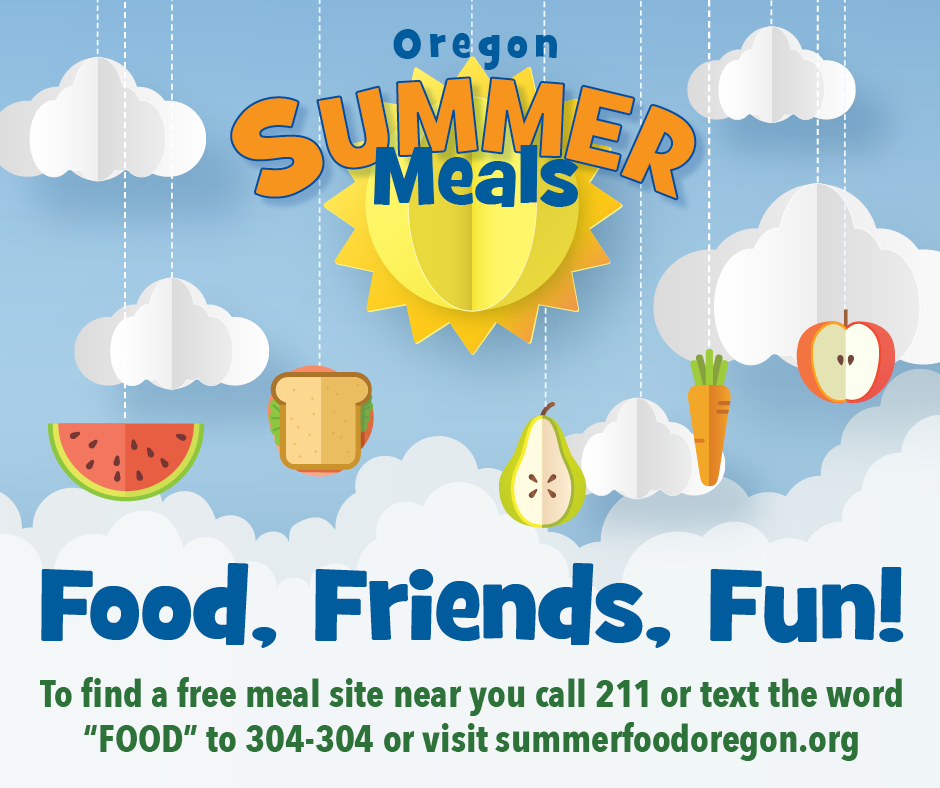 Each summer, Oregon hosts summer meal sites for kids 1-18 all over the state. Summer meal programs may serve a combination of breakfast, lunch, snack, and/or supper. Many programs also offer fun activities so kids can stay active and keep learning. There are a couple ways to find meal sites in your area.