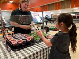 Kids love samples! Willamina SD offers samples of USDA DoD Fresh strawberries and broccoli to students. What a great way to introduce students to new or unfamiliar foods. One small sample size portion is much less intimidating! Children respond favorably to repeated exposures of new foods and are more likely to consume school meals if they’re familiar with the foods. Sample trays can also add a splash of color and excitement to your cafeteria. To further enhance your sample tray, consider including the fruit or vegetable in its whole form so children can identify what they are eating. Highlight information about food samples on the monthly menu to provide an educational component and encourage students to look forward to sampling days.