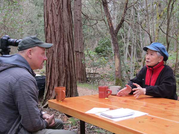 Photo: Japanese native Hideko Tamura-Snider explaining to ODF’s Jim Gersbach her wish for peace trees from Hiroshima to be planted throughout Oregon, her adopted home.