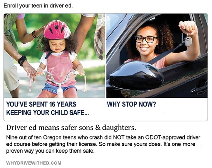 • If you are under 18 years of age and applying for a first-time Oregon driving privilege, a parent or legal guardian must certify that you are enrolled or attending school. If you are no longer in school, you must present a high school diploma or General Education Development (GED) certificate.