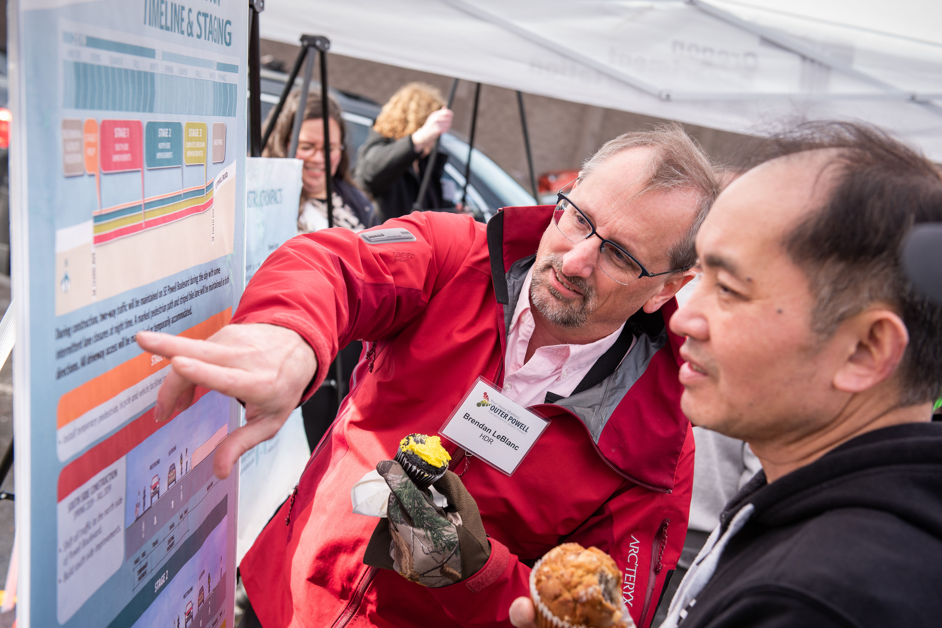 Community collaboration and support is a key component of this project. ODOT conducted community engagement activities during the initial planning and environmental phases and during the design process for Phase 1 (122nd Avenue to 136th Avenue) to help identify design solutions that balanced community needs and interests while minimizing project impacts. These community engagement activities included canvassing in the area, presenting at open houses/neighborhood meetings, and participating in community events (such as community walks and bike rides) to meet those impacted by the project and collect their feedback.