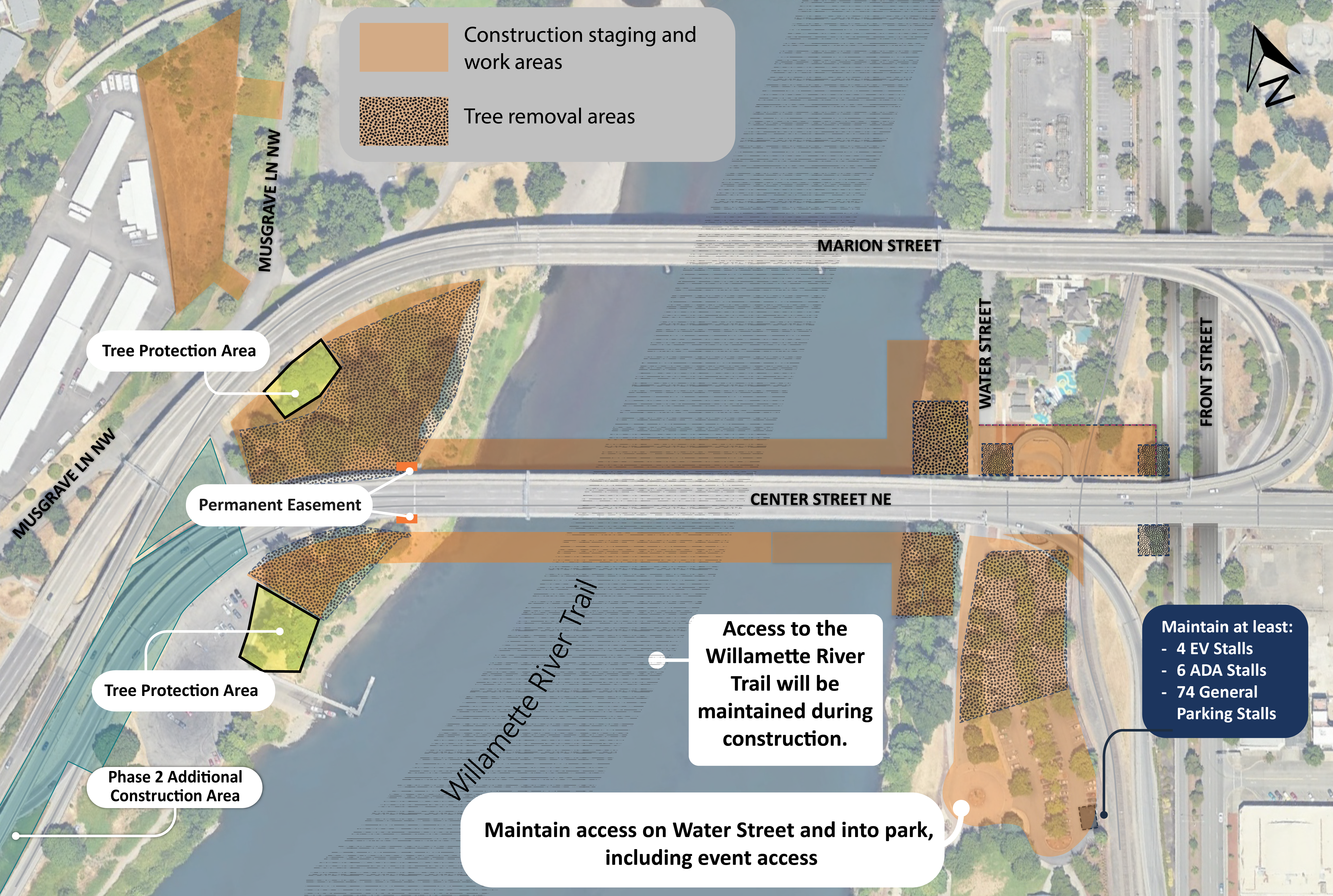 Graphic showing the temporary work area and Riverfront Park in Downtown Salem