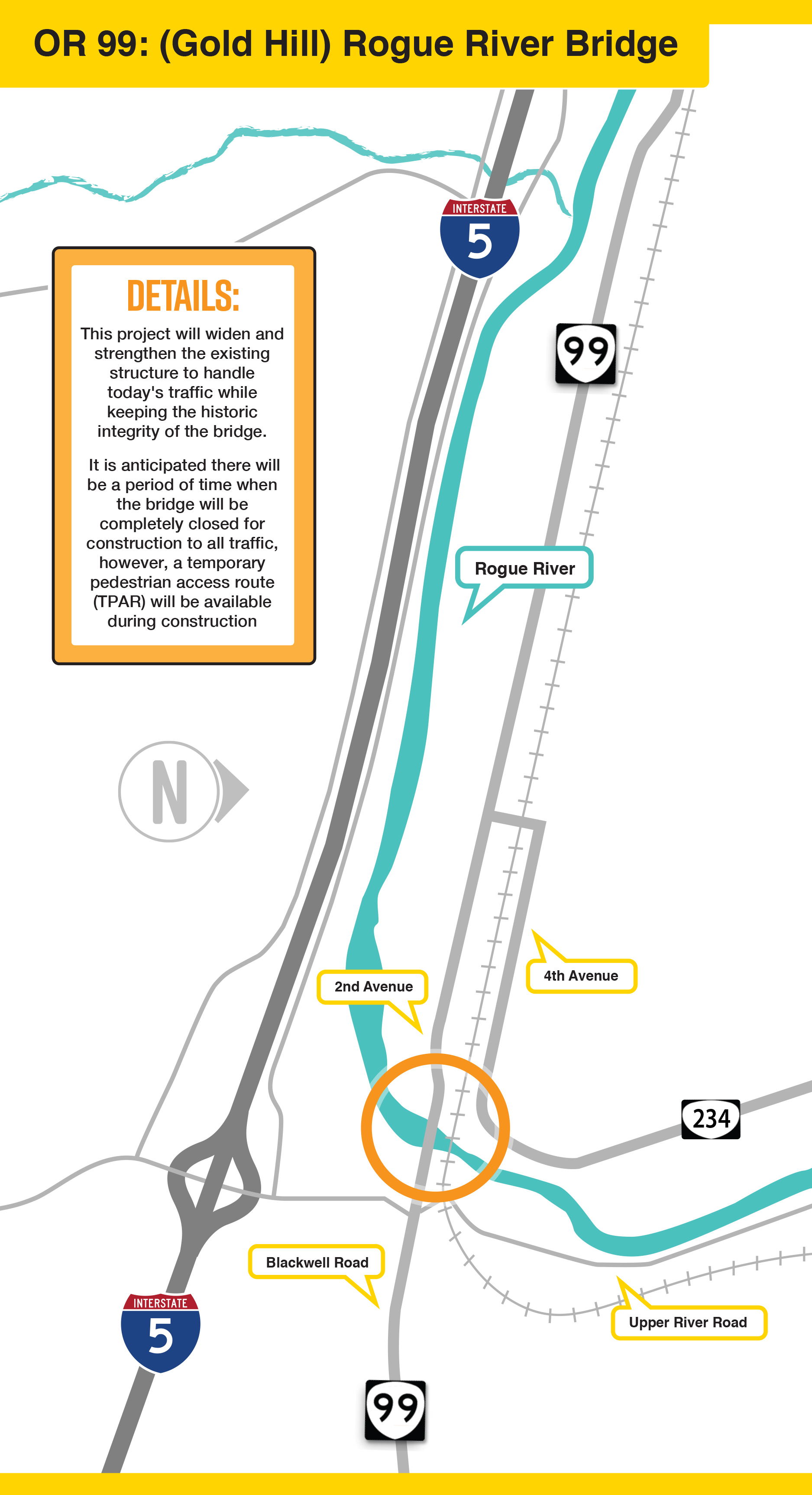 mproving the existing 1927 historic bridge that crosses the Rogue River, which is famous for its beauty and recreational opportunities. This bridge receives heavy pedestrian traffic as it also provides access between the City of Gold Hill and a mobile home park. For the bridge to remain in service it needs repairs.