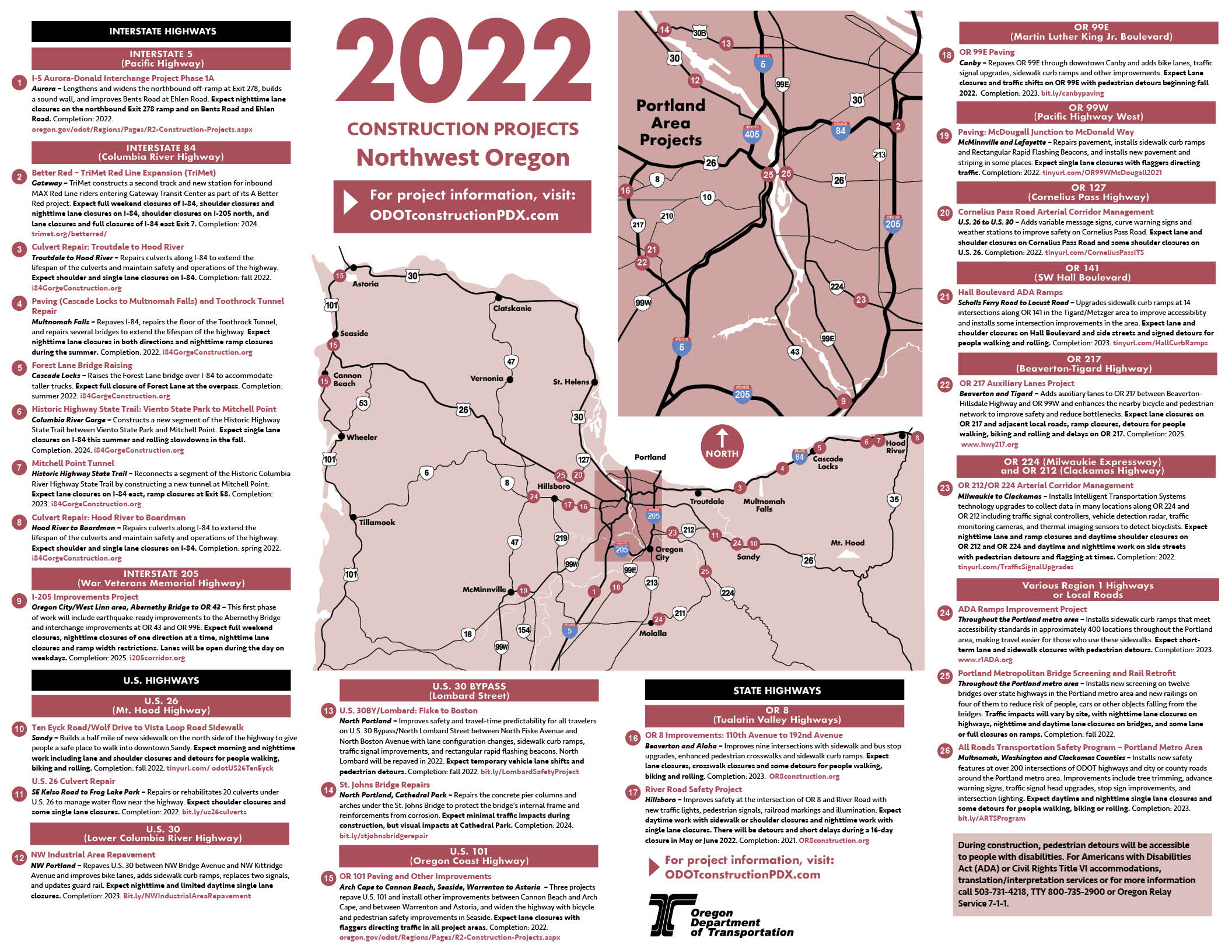 Scroll down to view ODOT's planned construction impacts in the Portland metro area a week in advance through the Weekly Construction Update.