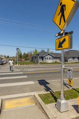 Crosswalks are an extension of the walkway to provide an accessible path to cross a roadway. Per Oregon Statue, every intersection is available for pedestrian crossing unless the crosswalk is closed by official action.
