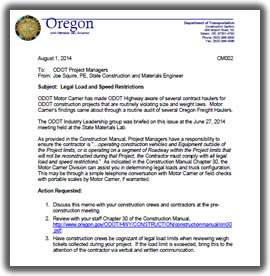 These memos offer guidance for regional Project Manager offices and the Technical Centers on construction issues. If you have any questions regarding these memos, email Barbara Harriman.