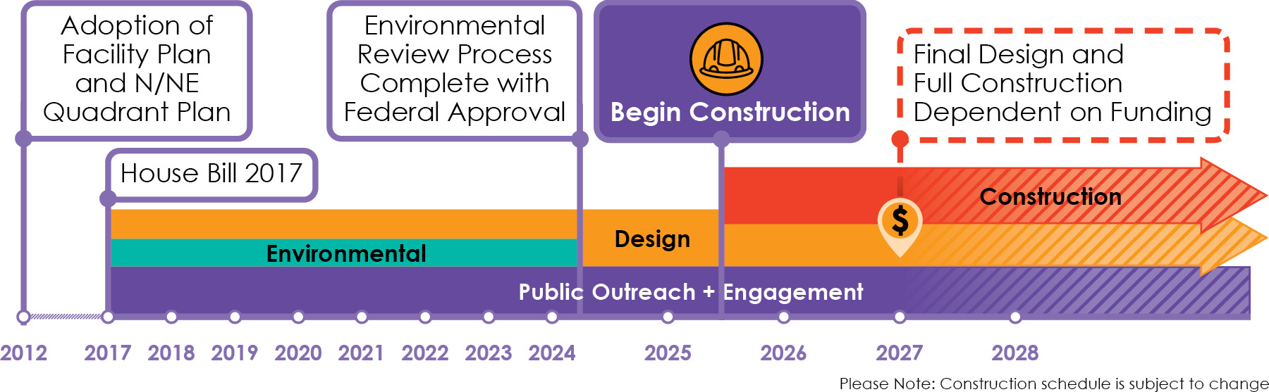 Of the federal funding granted to the project, $37.5 million for design and utility relocation has been obligated for spending on the project.