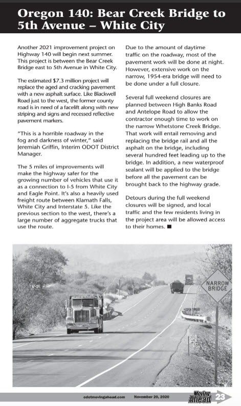 OR140_BearCreekBridge to 5thAve_White CIty_NOV2020 ODOT Moving Ahead publication.jpgODOT Moving Ahead story on the OR140_Bear Creek to 5th Ave. project