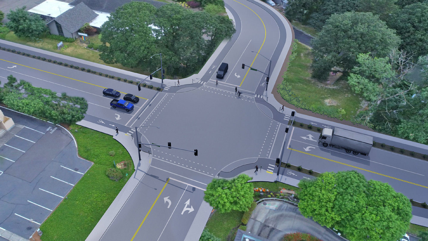 This protected intersection is similar to other recent improvements in West Linn and is a part of the City of West Linn's OR 43 Concept Plan.