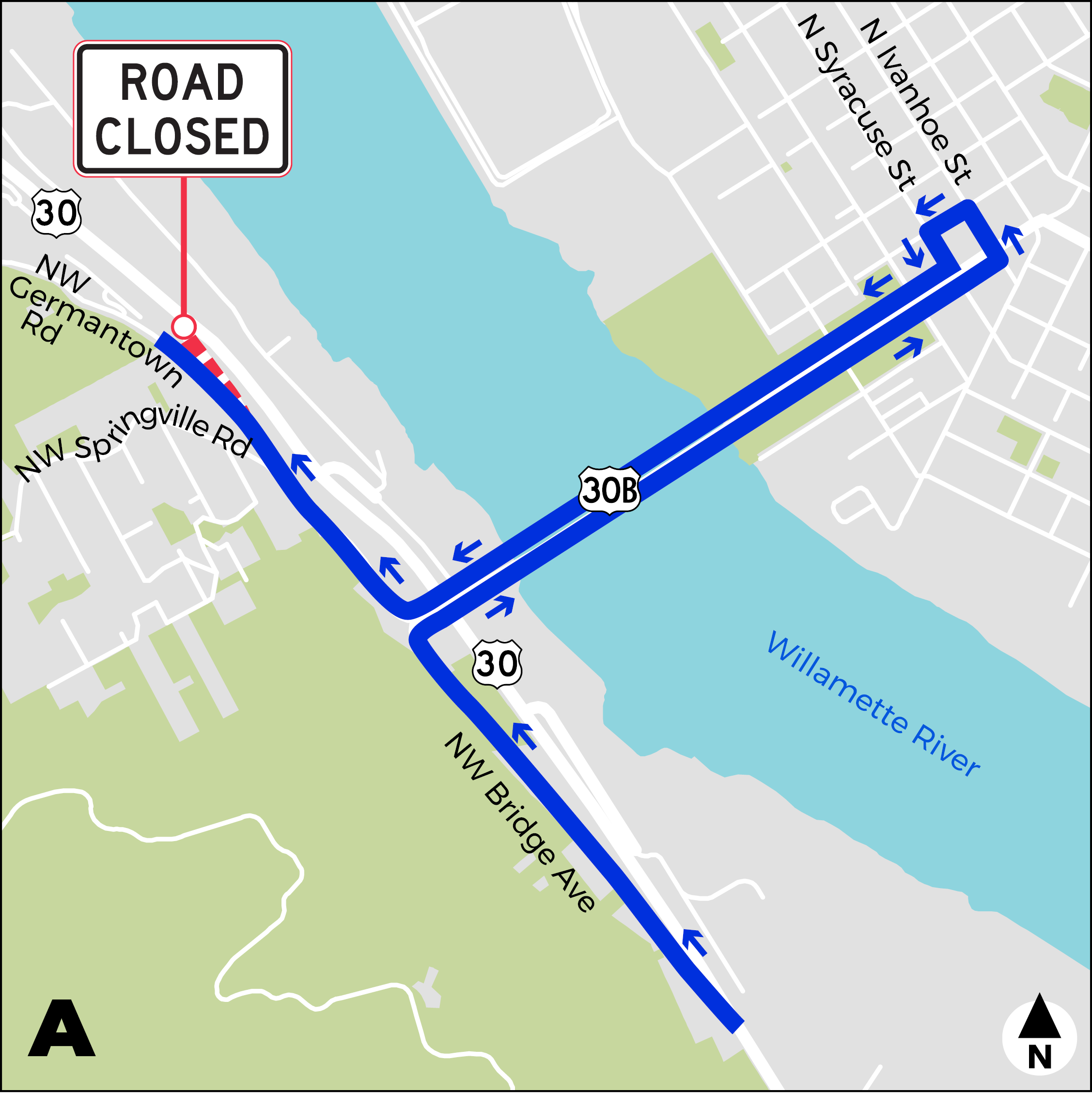 15 sites on U.S. 30, I-405 (Fremont Bridge), and U.S. 30B (St Johns Bridge).