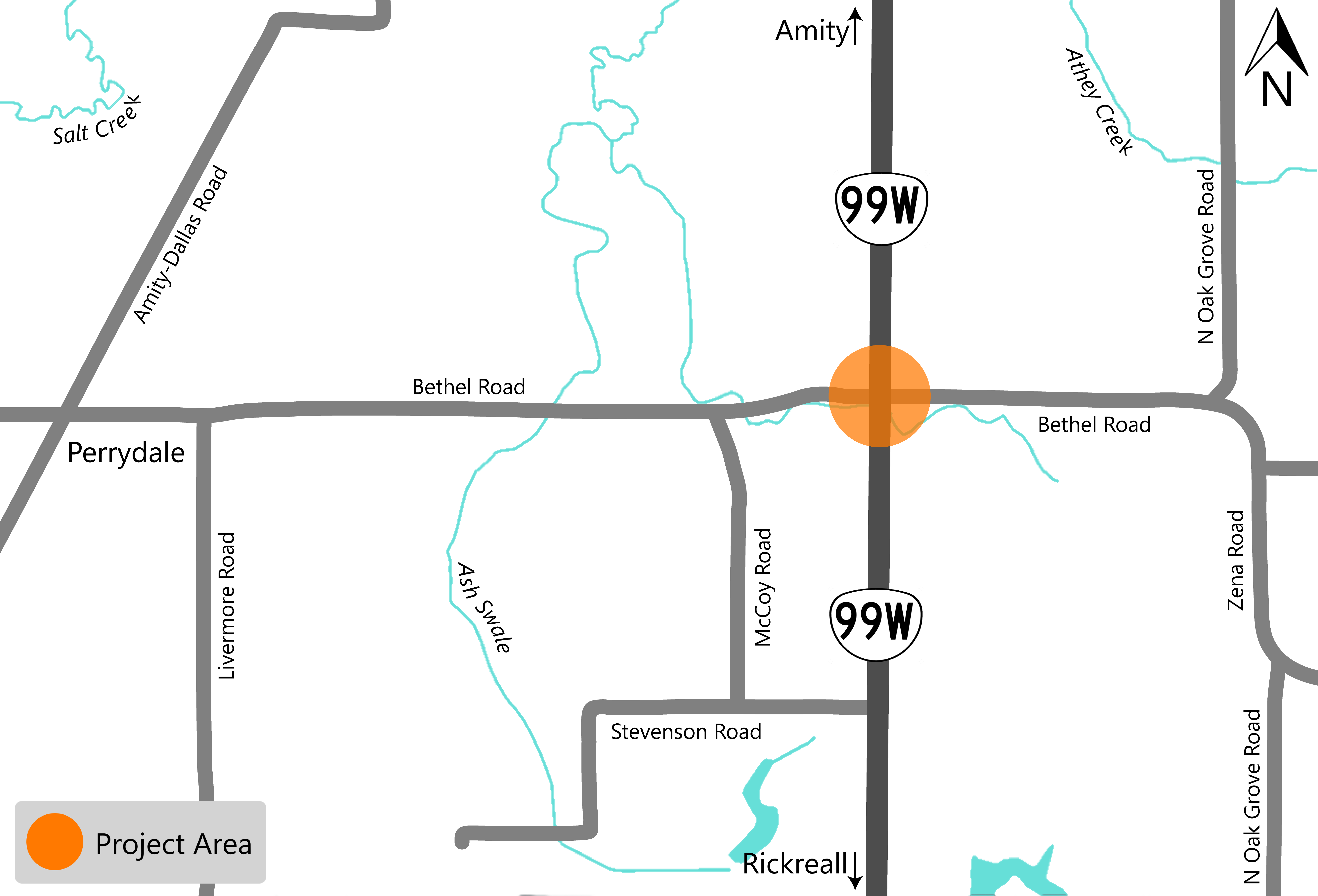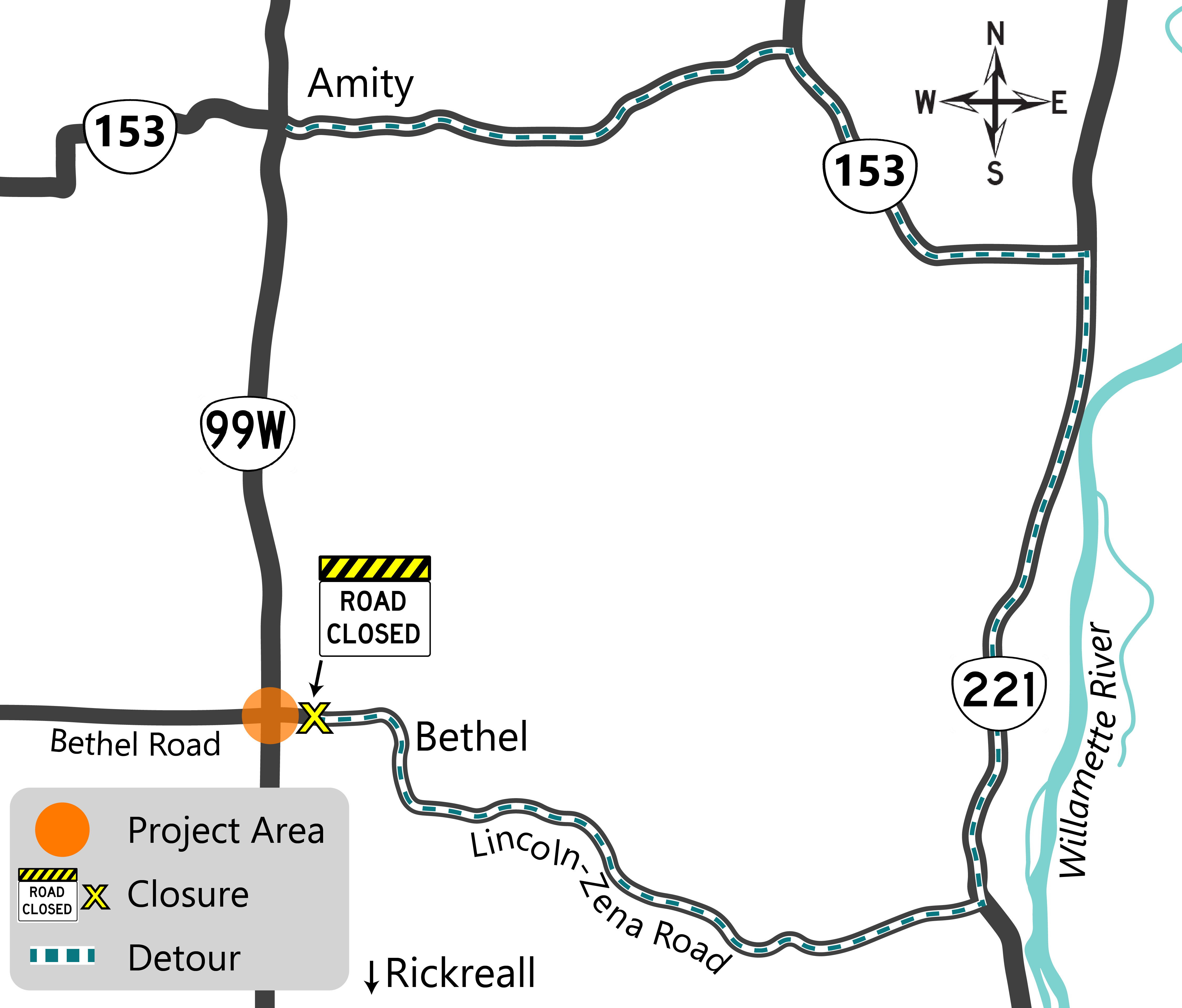- Bethel Road east of OR 99W to close with a signed detour for about three weeks.