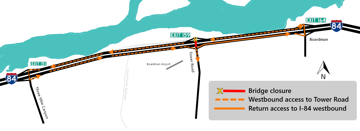 Tower Road over I-84, Exit 159; mileposts 159.18 - 159.50.