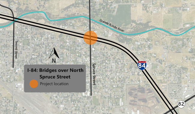 We are designing a project to repair two bridges on I-84 over Spruce Street in La Grande. We will repair deck surfaces and bridge approaches that are in poor condition and have failed connections. We will install new joints and rebuild transitions from the road to the bridge. These repairs will extend the life of the structures and provide a smooth and safer ride.