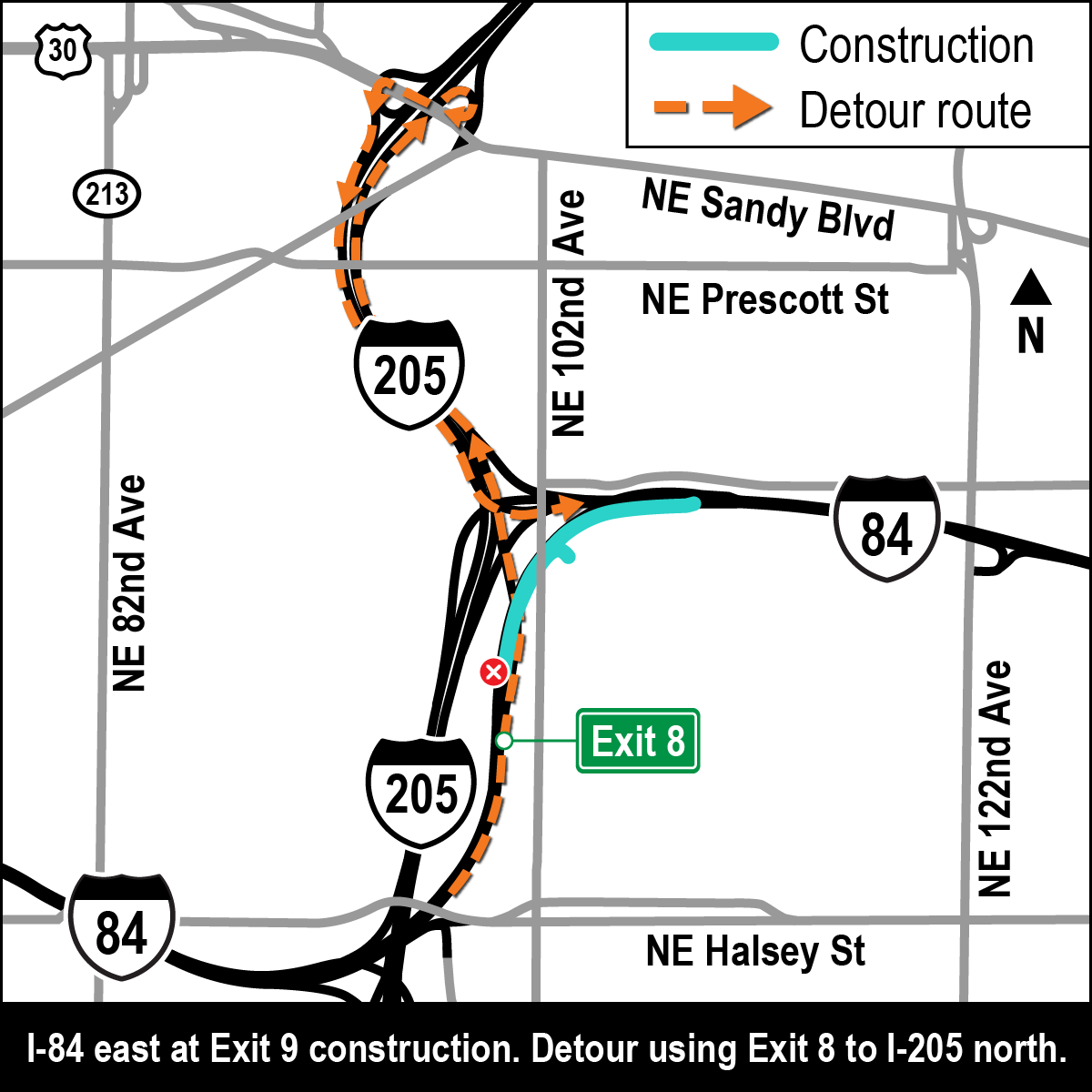 Improved the roadway surface on two sections of I-84: from Interstate 205 to 169th Avenue, and from just east of 201st Avenue to Marine Drive (exit 17).