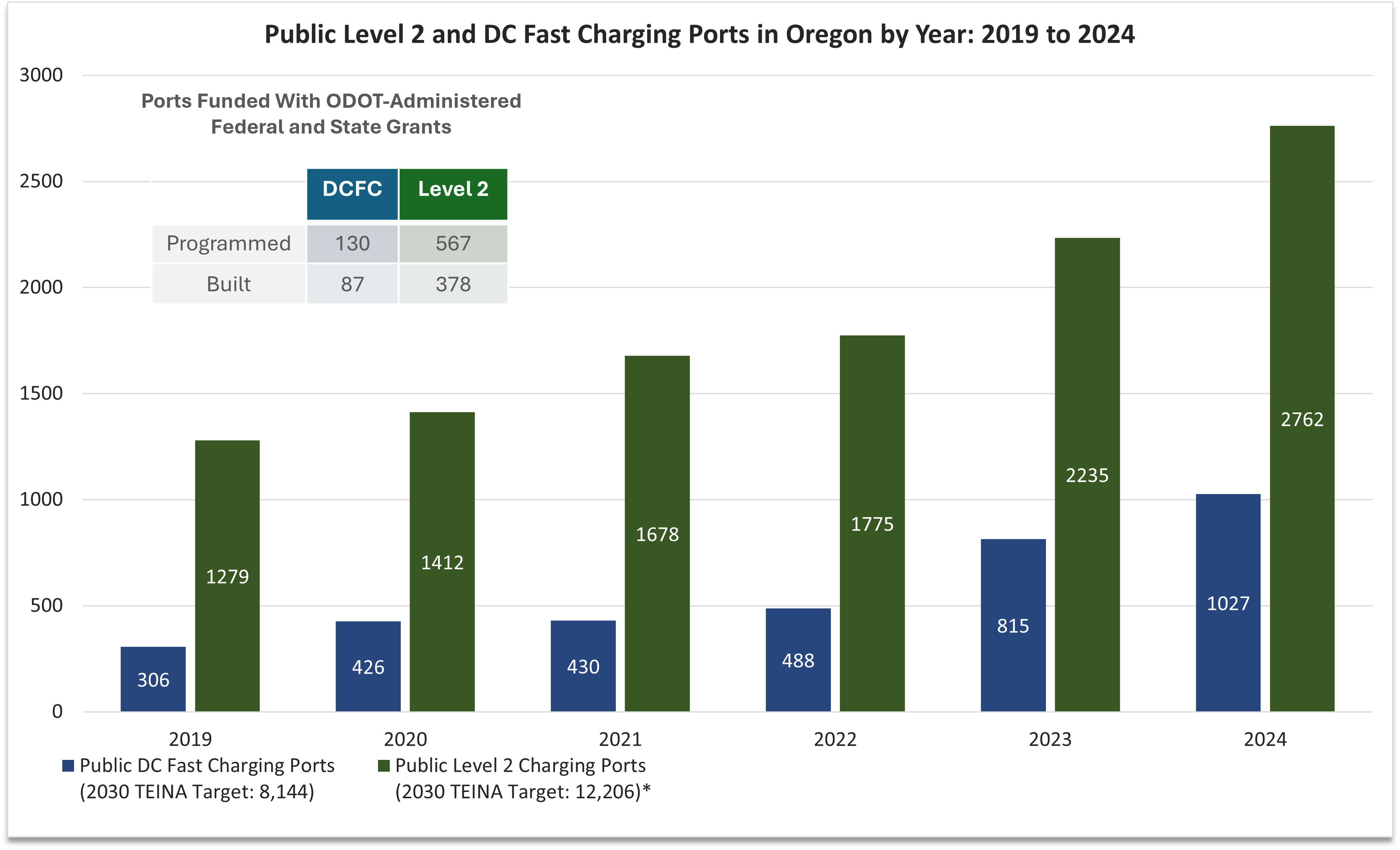 ODOT’s efforts to add public charging infrastructure will help reduce range anxiety and improve accessibility for all users. Those efforts combined with private sector investments, rules and regulations, greater availability of vehicles, and purchase incentive programs will help to increase electric vehicle use.