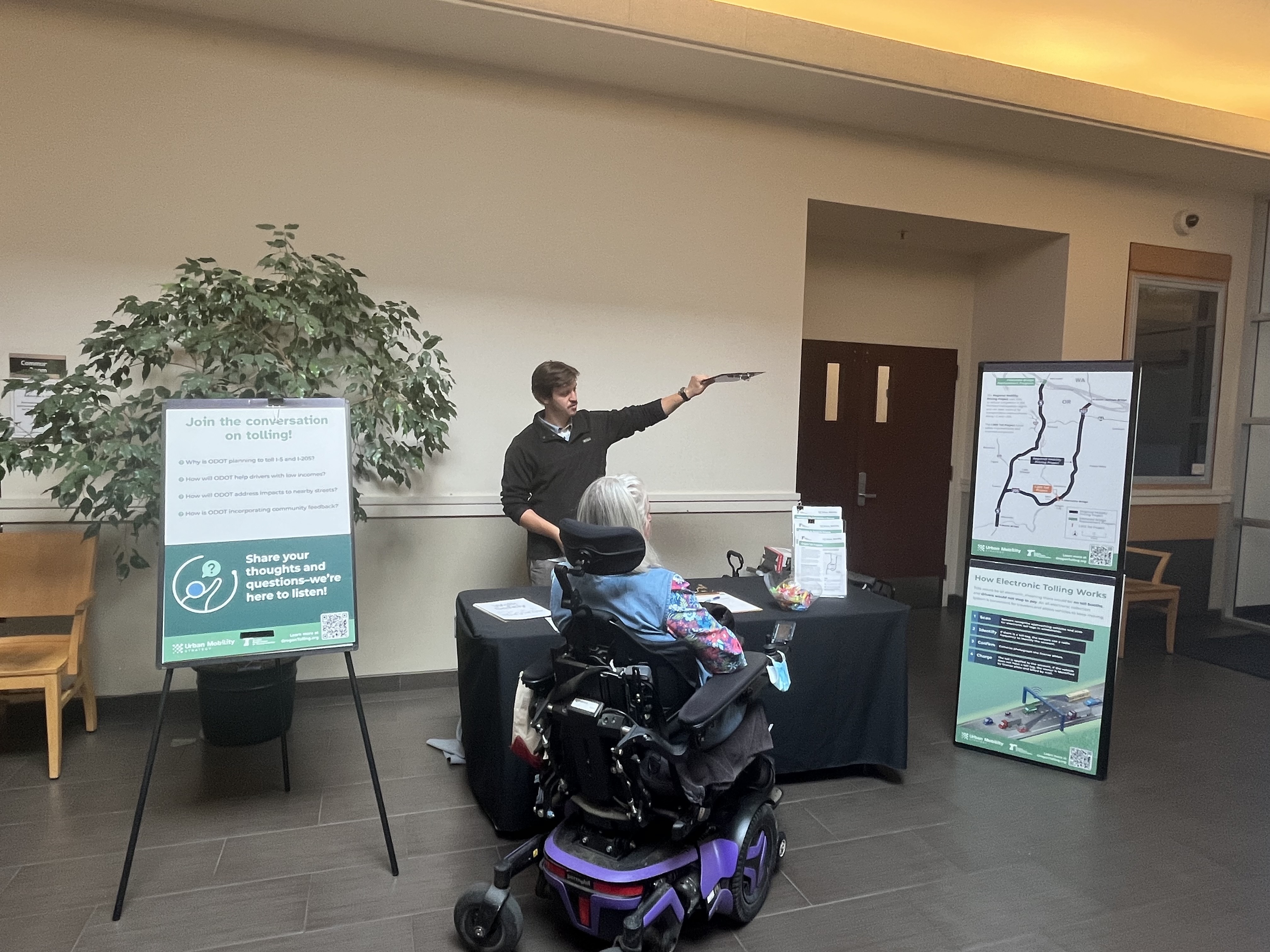Join us in person. We'll share information and have project staff available to answer your questions at upcoming community drop-in sessions. At these events, attendees can review project materials, ask questions, and provide written comments about the Environmental Assessment. Visit OregonTolling.org for a complete list of drop-in locations and times.