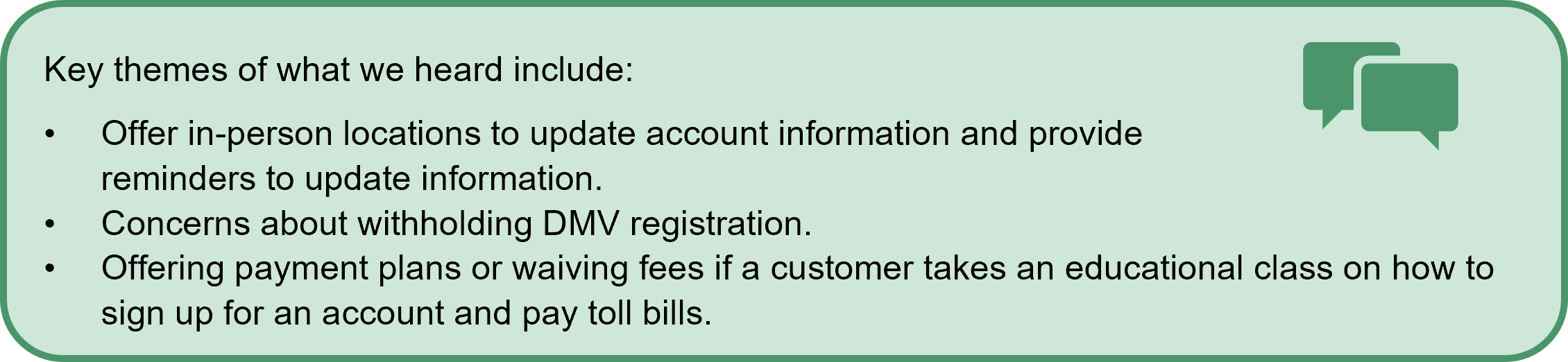 For example, in response to community feedback, we are analyzing a toll discounts for people making up to 400% of the federal poverty level. We are also working with local jurisdictions to minimize impacts from drivers rerouting from I-205. And we are directing toll revenue from the Abernethy and Tualatin River bridges to fund improvements on I-205.