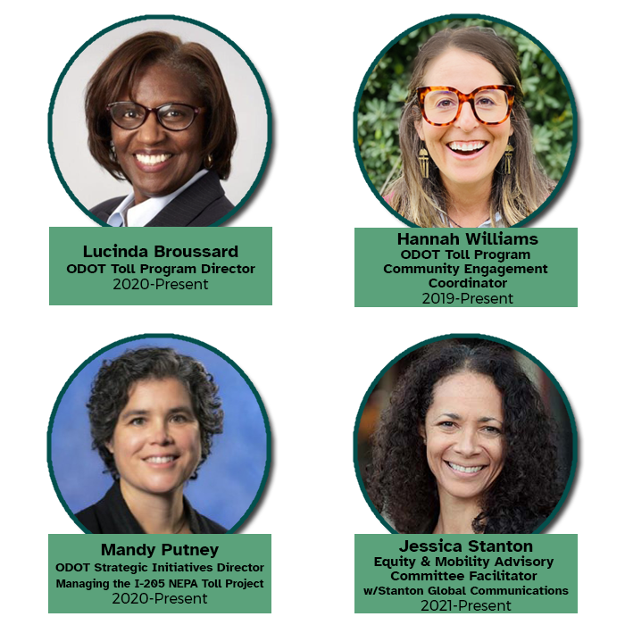 We are committed to creating better transportation solutions for historically and currently excluded and underserved communities. As part of that commitment, we formed the Equity and Mobility Advisory Committee (EMAC), made up of leaders from community-based organizations and underserved communities, to advise the Oregon Transportation Commission and us on creating an equitable tolling program. With EMAC's support and vision, we developed an “equity framework" with principles and steps to guide the project's planning process. As part of this commitment, we are developing a low-income toll program that will provide discounts to low-income drivers.