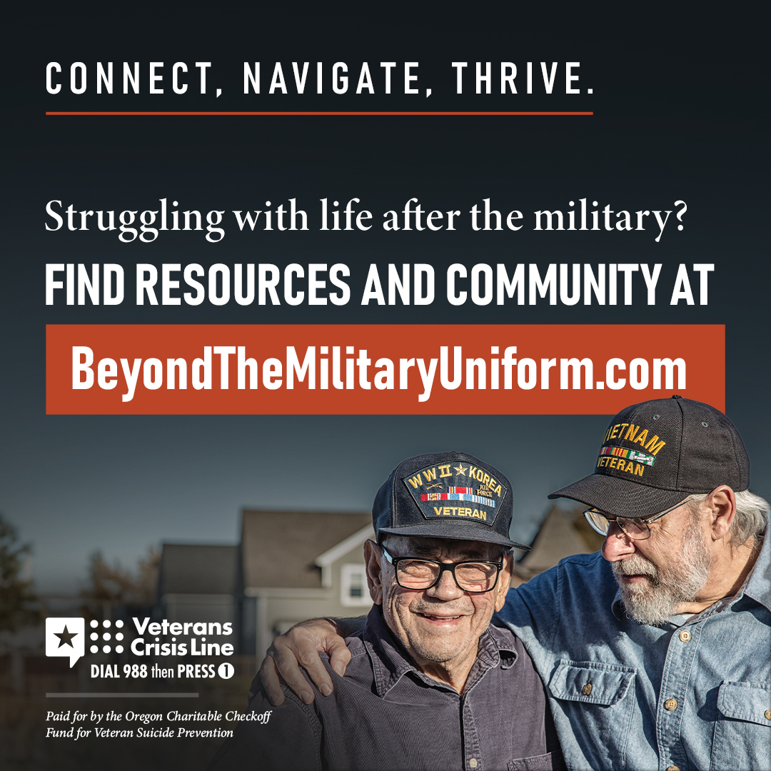 BeyondTheMilitaryUniform.com — Oregon’s first centralized, online resource dedicated to suicide prevention for veterans and their support networks.
